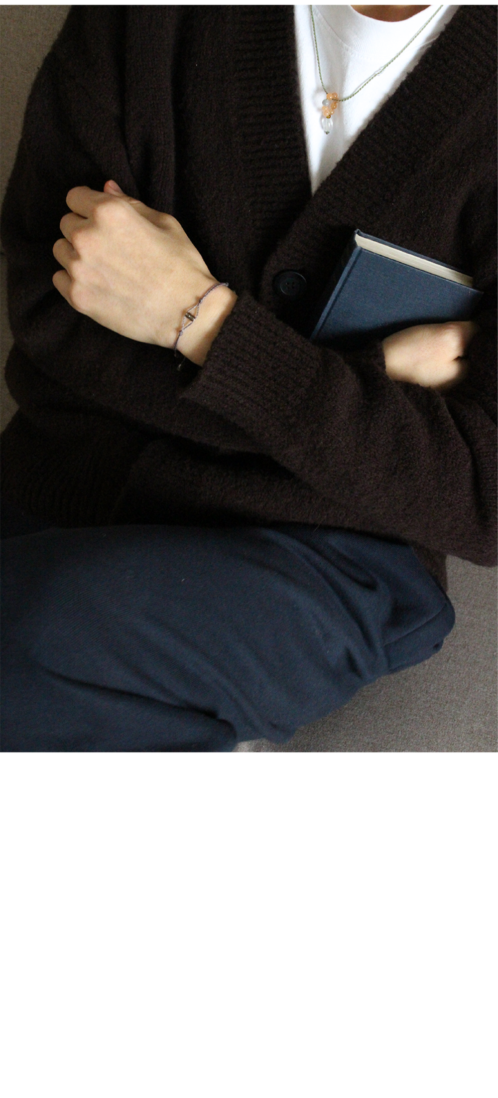 은은한 보랏빛과 갈색이 맴도는 부드러운 차콜색 실로 제작되며 메탈릭한 차콜 비즈로 포인트를 주었습니다.