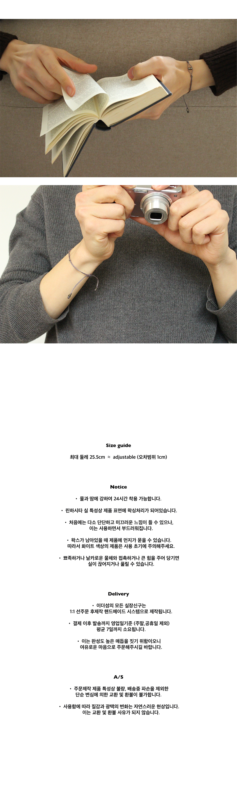 본 제품은 이더섬의 시그니처 디자인으로, 중앙의 볼드한 다이아몬드 실루엣이 매력적인 실장신구입니다. 매듭으로 길이조절을 하여 착용하는 방식으로,팔목의 두께에 상관없이 편히 활용할 수 있습니다.