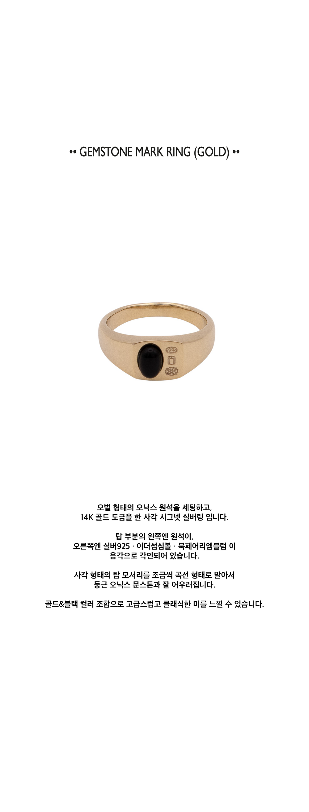 오벌 형태의 오닉스 원석을 세팅하고, 14K 골드 도금을 한 사각 시그넷 실버링 입니다.