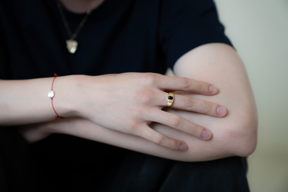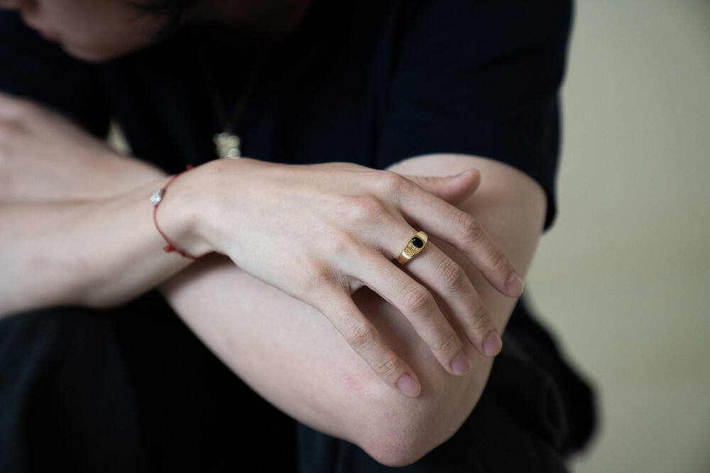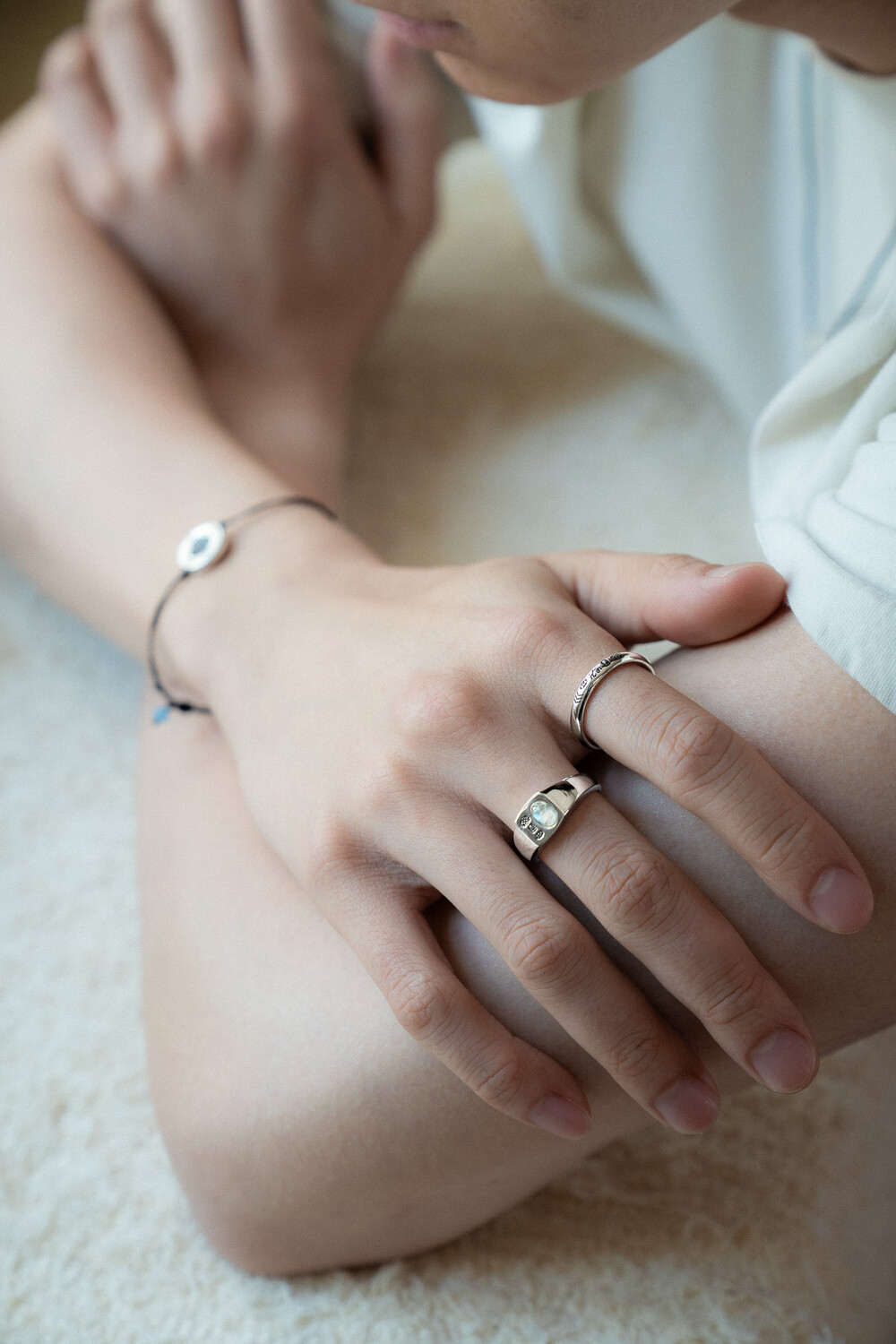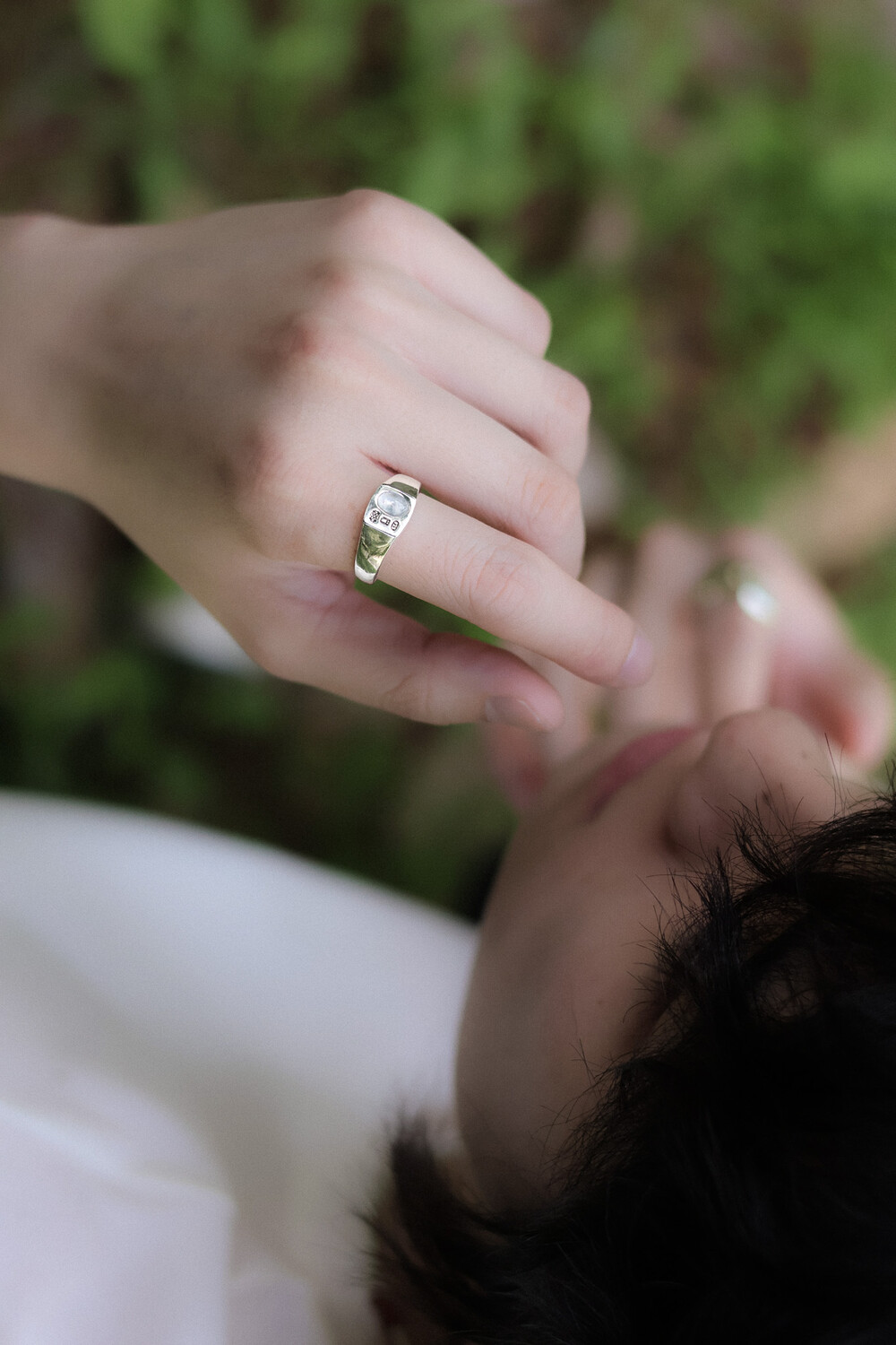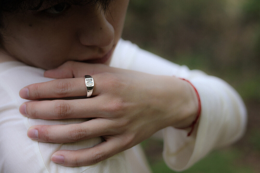 매순간 색감이 달라지는 원석과 선명한 각인의 조합이 매력적인 반지 입니다.