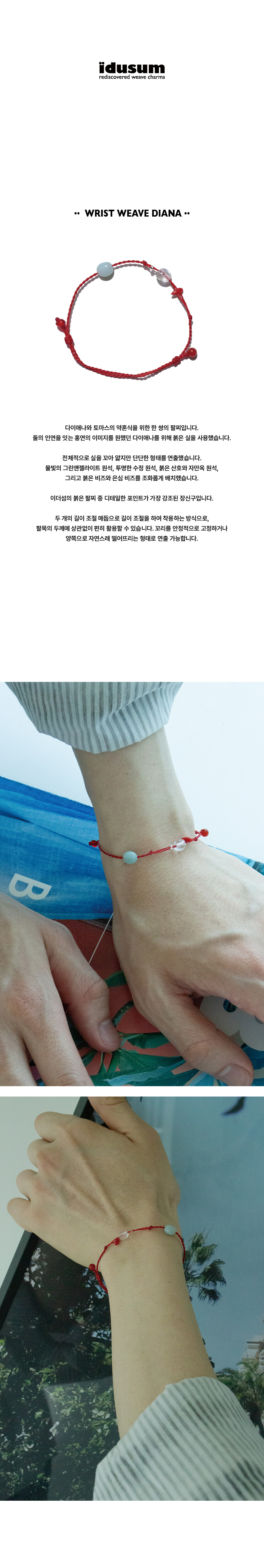 다이애나와 토마스의 약혼식을 위한 한 쌍의 팔찌입니다. 둘의 인연을 잇는 홍연의 이미지를 원했던 다이애나를 위해 붉은 실을 사용했습니다.