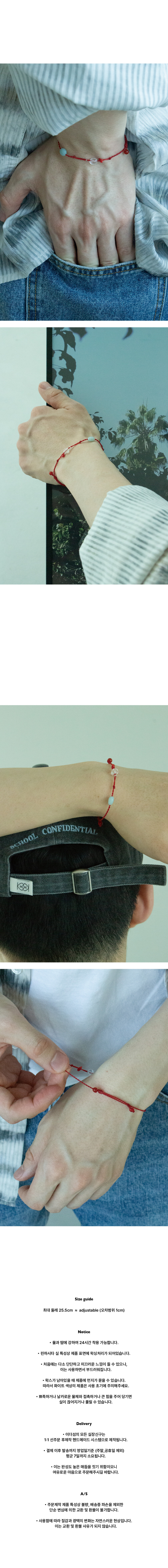 두 개의 길이 조절 매듭으로 길이 조절을 하여 착용하는 방식으로, 팔목의 두께에 상관없이 편히 활용할 수 있습니다. 꼬리를 안정적으로 고정하거나 양쪽으로 자연스레 떨어뜨리는 형태로 연출 가능합니다.