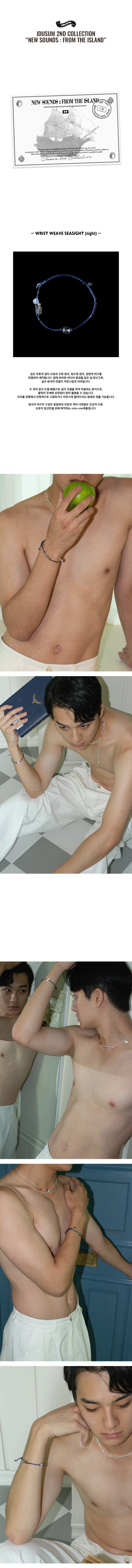 깊은 푸른색 실의 꼬임과 수정 원석, 침수정 원석, 검정색 비즈를 연결하여 제작됩니다. 바다의 밤 풍경이 연상되는 실장신구로, 실과 원석의 연결이 자연스럽게 이어집니다.