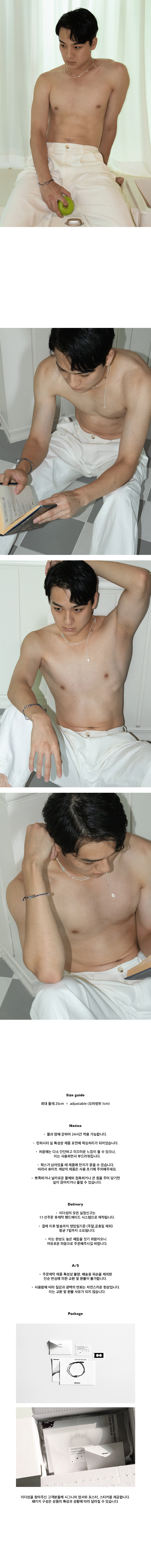 두 개의 길이 조절 매듭으로 길이 조절을 하여 착용하는 방식으로, 팔목의 두께에 상관없이 편히 활용할 수 있습니다. 꼬리를 양쪽에서 안정적으로 고정하거나 자연스레 떨어뜨리는 형태로 연출 가능합니다.